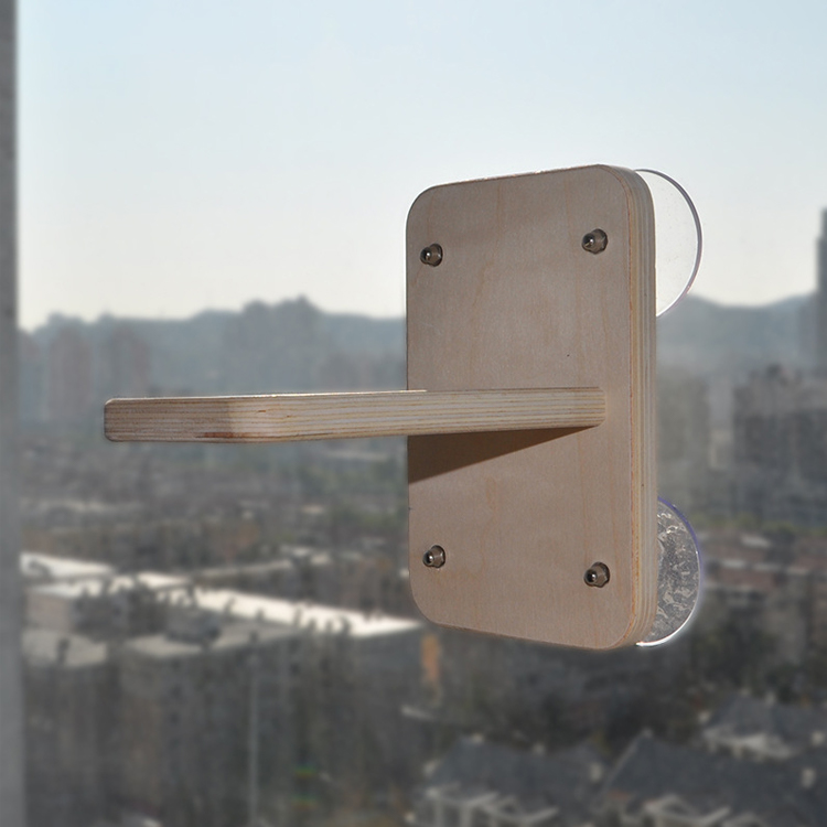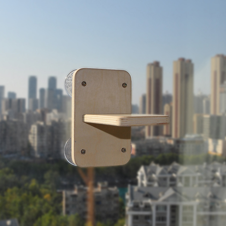 This suction cup wood cat window shelf for indoor cats provides a safe, elevated space for indoor cats to rest, sunbathe, and watch the outdoors. Made from sturdy wood, it can attach to windows or smooth surfaces using strong suction cups or be mounted on walls with screws. Its minimalist design saves floor space while keeping cats entertained and comfortable.