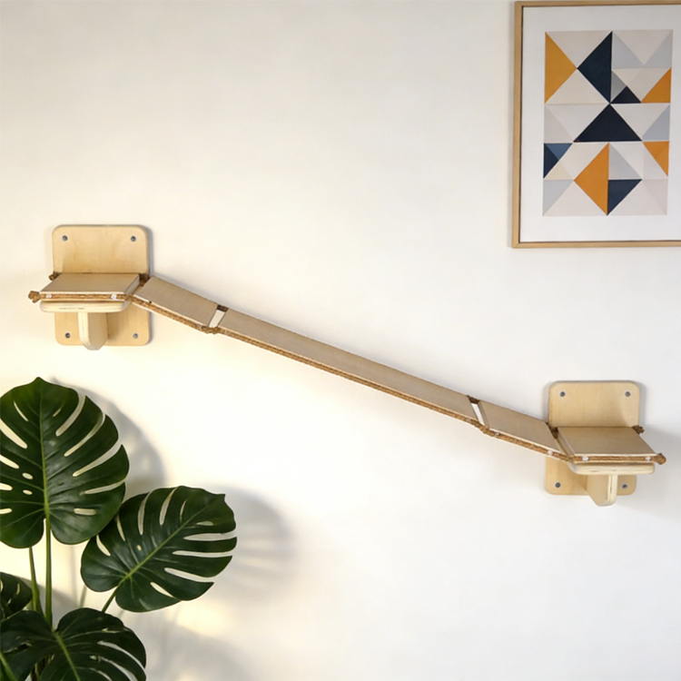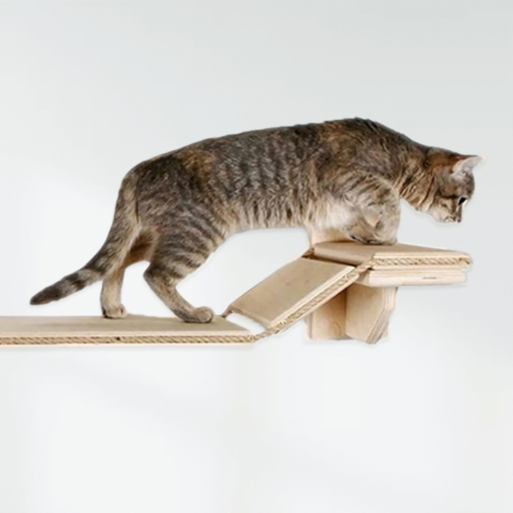 This wall-mounted foldable cat bridge provides a safe, elevated playground for cats while saving floor space. Made from durable solid wood or high-quality plywood, it features a modern, minimalist design and a folding mechanism that allows it to lie flat against the wall when not in use. Ideal for small homes or apartments, it encourages climbing, jumping, and exploring, keeping indoor cats active and engaged.