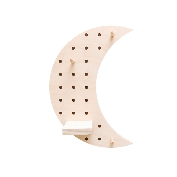 Add a touch of whimsy and practical storage to your walls with this unique Moon-Shaped Pegboard Shelf. Crafted from sturdy birch plywood, this shelf combines rustic charm with functional design. Its distinctive crescent shape features an integrated pegboard surface adorned with star-shaped cutouts, providing versatile hanging points for keys, jewelry, small tools, lightweight decor, or mail. Perfect for entryways, living areas, home offices, or children’s rooms, it maximizes vertical space while serving as an eye-catching decorative element.