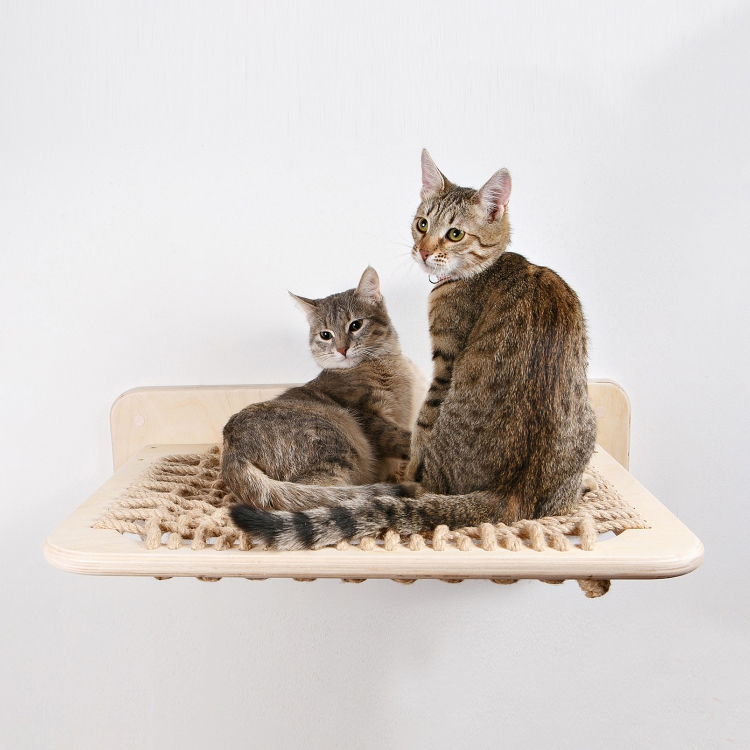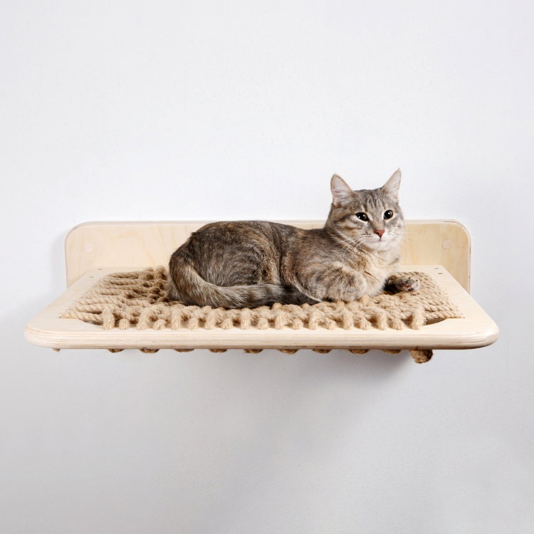 Give your cats a cozy, elevated resting spot with this wood wall-mounted cat hammock. Featuring a durable sisal rope surface, it encourages climbing, lounging, and vertical exploration while saving floor space. Its sturdy wooden frame supports cats of various sizes and blends seamlessly into modern home decor. Perfect for creating a modular cat wall system for multiple cats or active kittens.