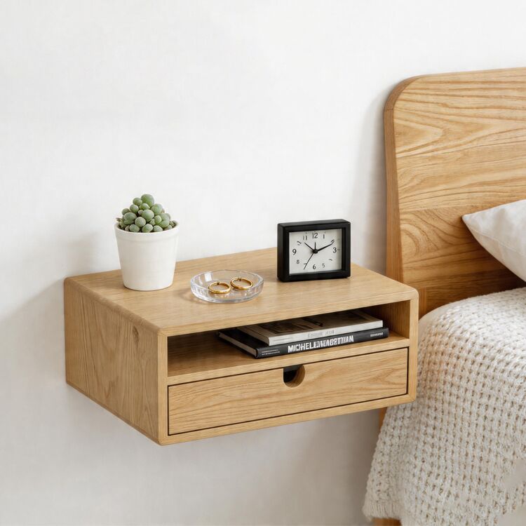 Wooden Storage Wall Mounted Bedside Table with Drawer